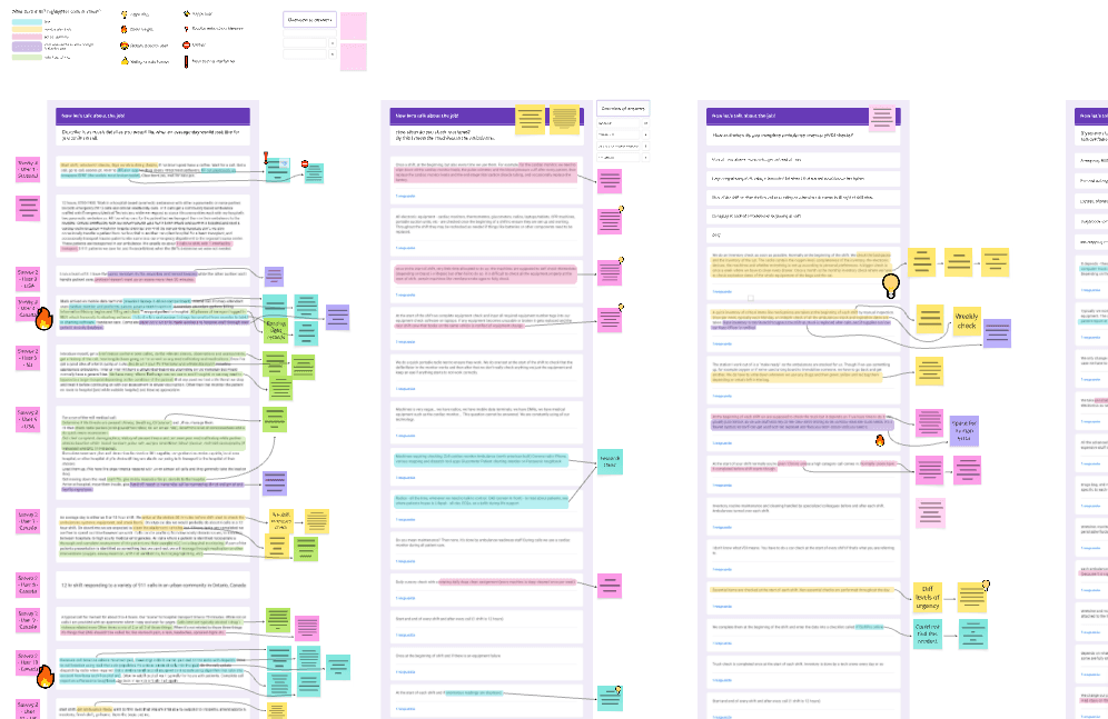 These conversations revealed the intensity and unpredictability of their work — managing life-threatening situations while navigating limited time, space, and tools. Paramedics expressed frustration over the constant switching between patient care, reporting, and equipment management, often relying on manual note-taking and paper-based systems.