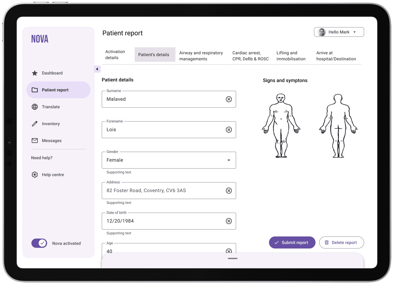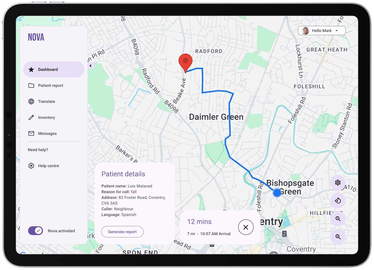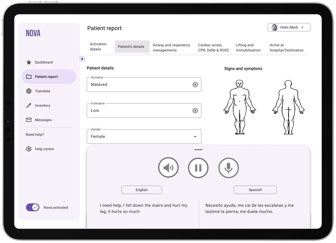 Nova is a digital assistant for UK paramedics that automates patient reporting, provides real-time translation, and delivers actionable insights — helping emergency teams work faster, smarter, and with greater clarity.