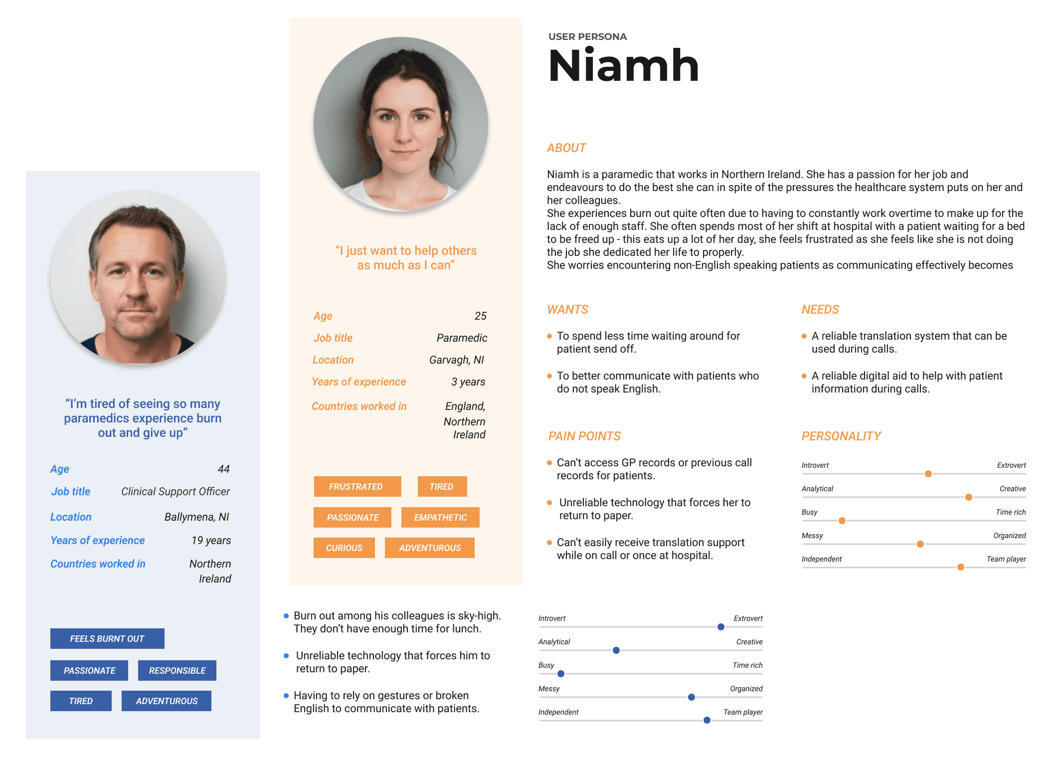 I also placed strong emphasis on brand development, wanting Nova to integrate seamlessly within NHS systems while standing apart from typical healthcare and hospital applications. The goal was to create a product with personality and warmth — something that felt supportive and human — without ever distracting paramedics or compromising simplicity. The brand’s tone, colour, and typography were designed to convey calm, confidence, and clarity in high-pressure contexts.