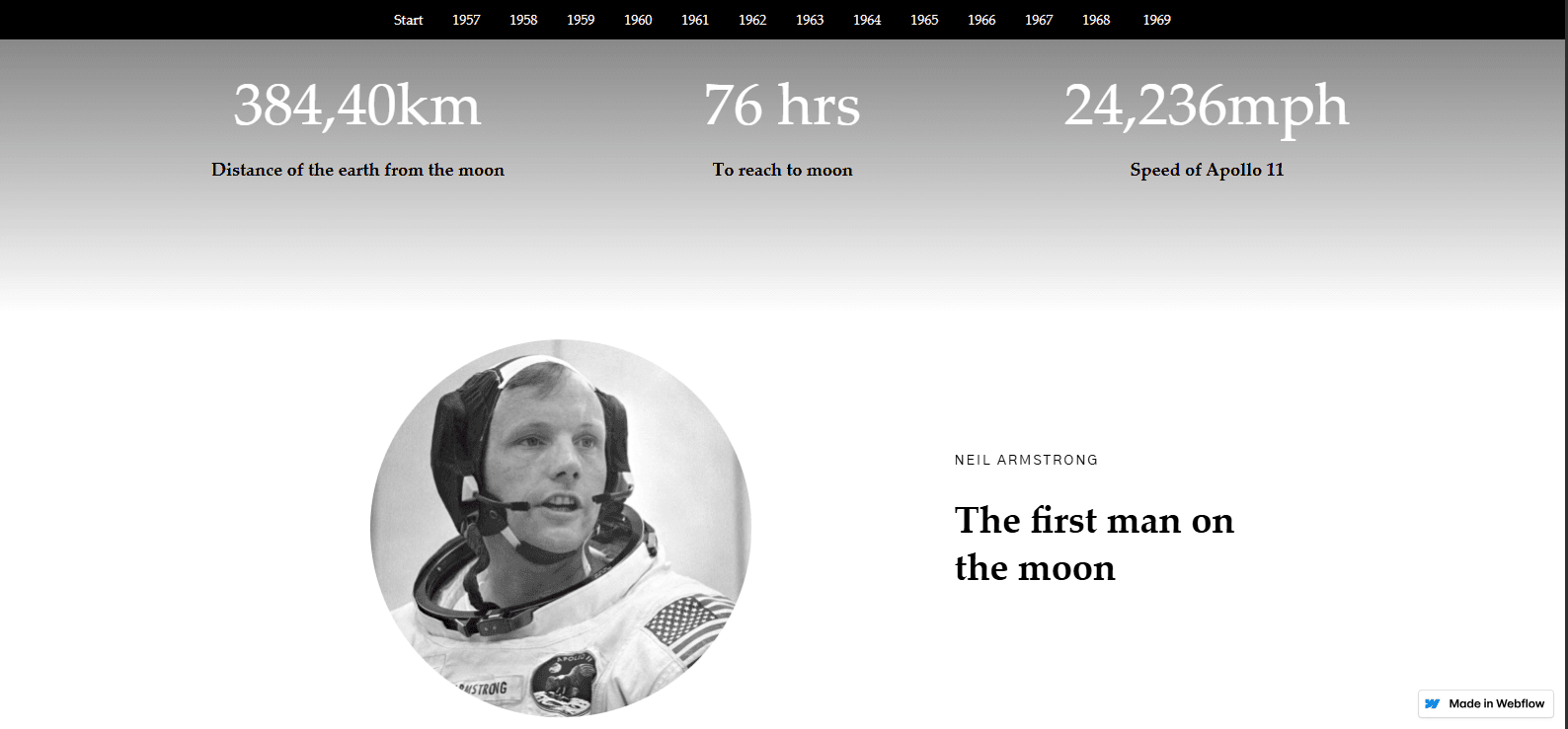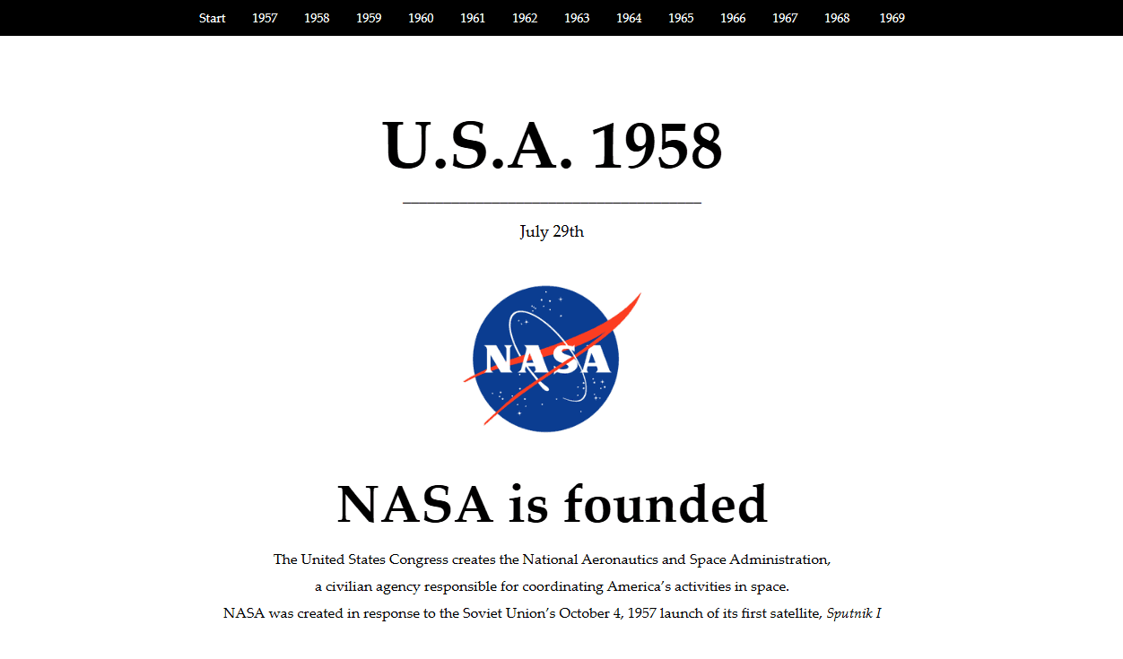 A narrative web experience exploring the Space Race (1957–1969)
