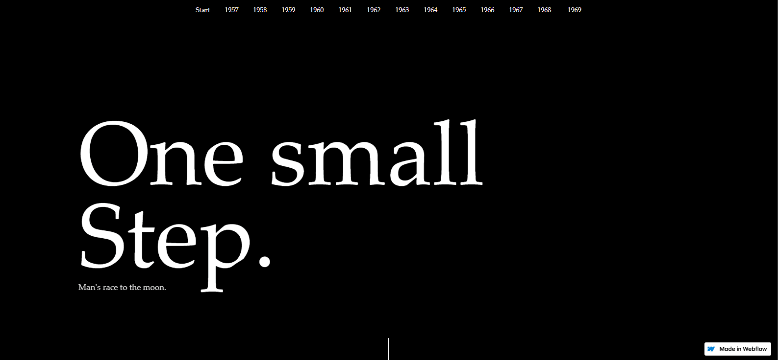 One Small Step is a narrative single-page website created for a university module, designed to tell the story of the Space Race through a visually immersive, scroll-driven experience.