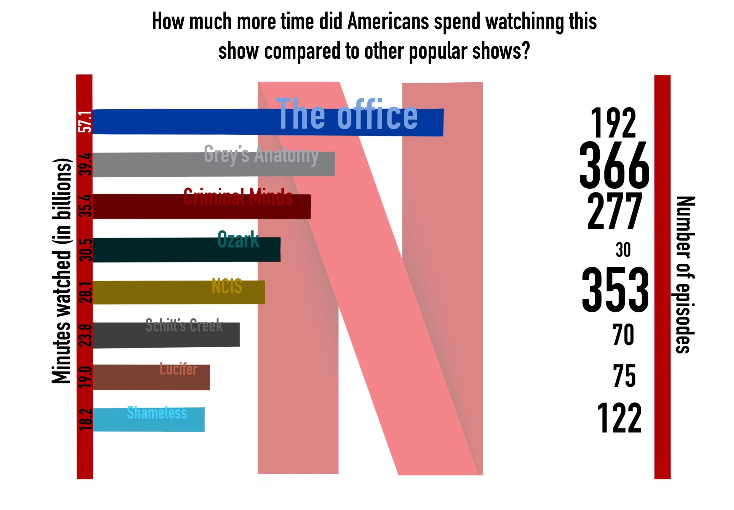 For this project, I set out to design an infographic exploring global population data, which eventually led me to focus on a more specific cultural snapshot — the TV shows Americans spent the most time watching during lockdown. This concept allowed me to merge two of my favourite aspects of design: research and illustration. By transforming streaming data into a visually engaging story, I aimed to capture not only the numbers, but also the shared experience of entertainment and escapism during a uniquely challenging time.